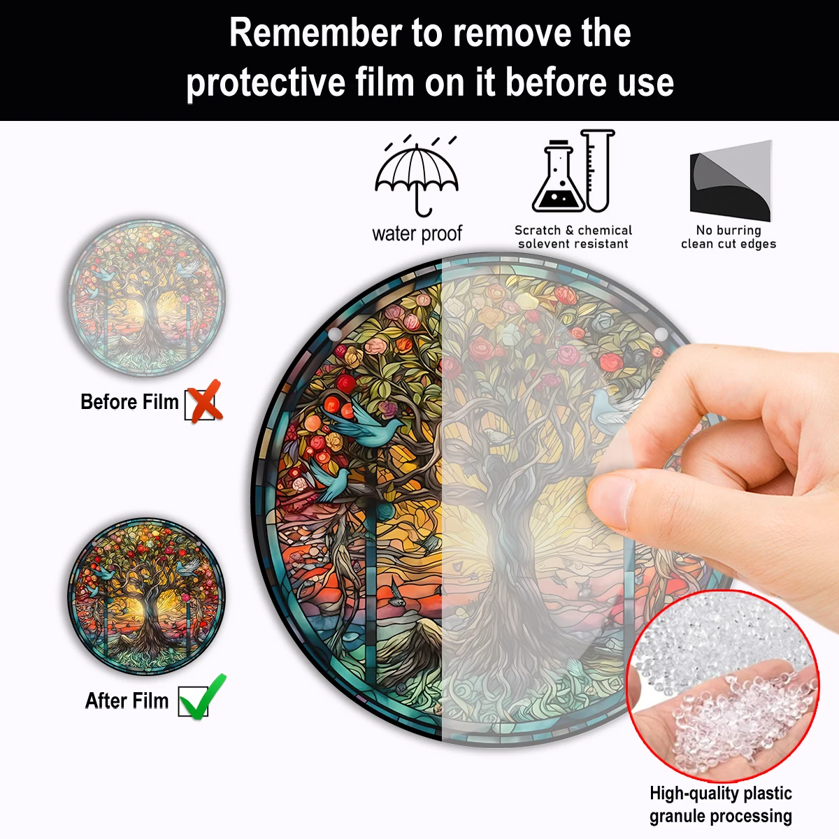 1PC Tree of Life Wall Art Decor Hanging Sign Decorative Indoor Outdoor Window Acrylic Welcome Plate Pendant Decoration